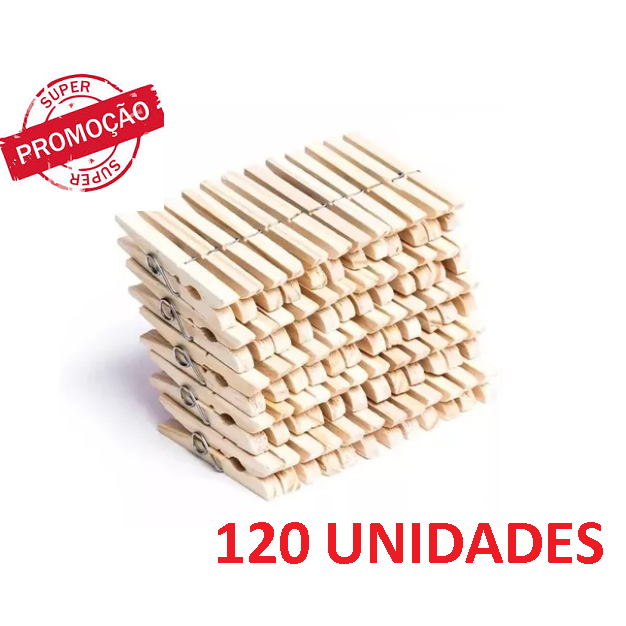 KIT COM 120 UNIDADES DE PRENDEDOR PREGADOR DE ROUPAS, MADEIRA GIGANTE