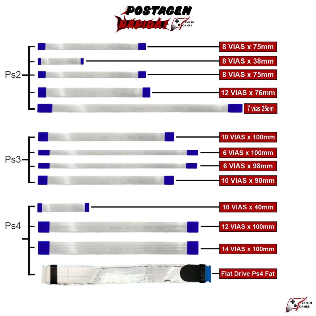 Cabos Flats para Playstation 2, 3 e 4 + Flat HOP 14XX Xbox 360