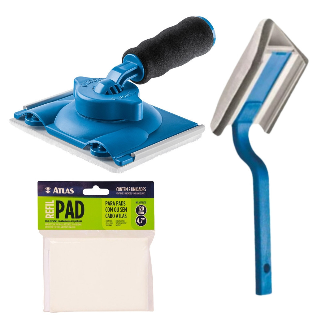 Kit Recorte Acabamento de Pintura - Pad Cantos 90° E Rodapé + 2 Refil Lã Sintética Cabo 360º Atlas