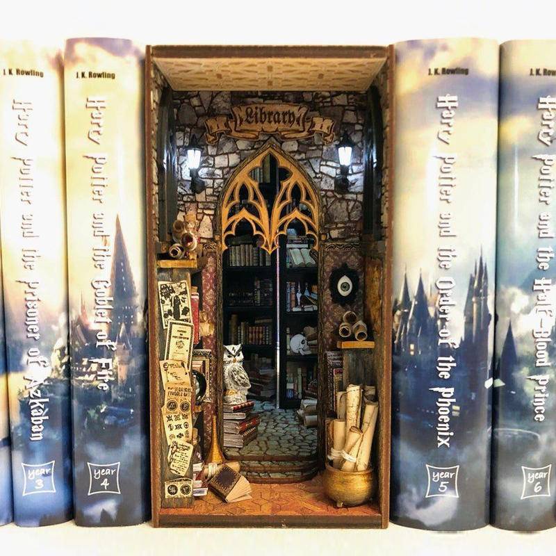 Faça Você Mesmo Kit Miniatura Estante Ornamento Diy Book Nook Doll House Diorama 3D Puzzle Bookend Roombox Brinquedo Presentes Modelo