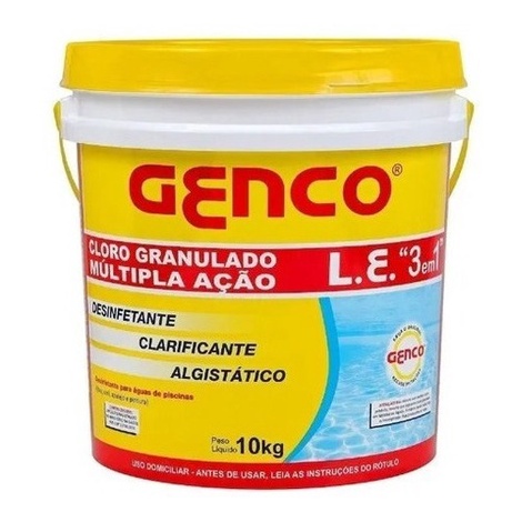 Genco Cloro Granulado L.E. 3 em 1 Multipla Ação 10kg Balde