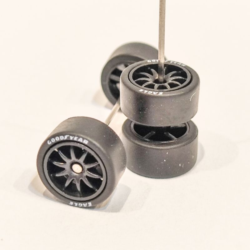 Rodas com pneus de borracha raiada preta Goodyear para custom de miniaturas Hot Wheels escala 1:64