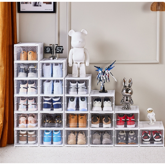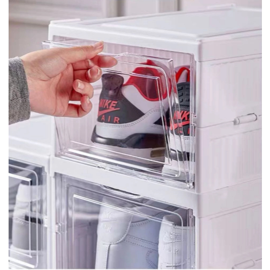 Caixa De Sapato Sapateira Vertical Organizador Tênis 3 Andares Empilhável Transparente Dobrável
