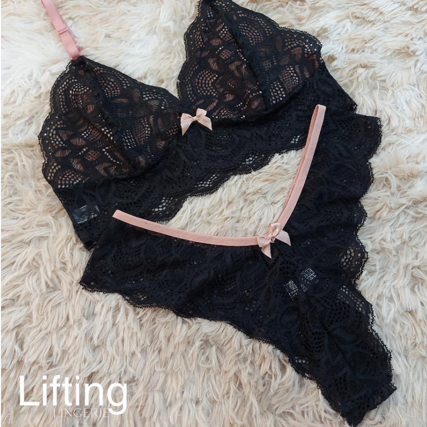 Conjunto De Renda Sem Bojo Com Calcinha Modelo Asa Delta