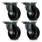Kit 4 Rodízios Giratório Black Rodinha 3" Anti Risco 75mm com Trava e Rolamento 400kg Reforçada para Moveis Pesados