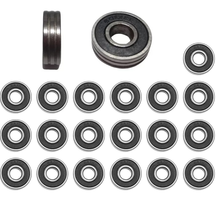 Kit com 20 Unidades de Rolamentos Abec 1 608RS HHMS Importados Com Estrias Para Skates e Patins - Envio Imediato