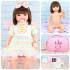 Boneca Silicone Menina Realista Bebe Reborn Eloise Cabelo Castanho Vestidinho Recem Nascido Baby Com Acessorios