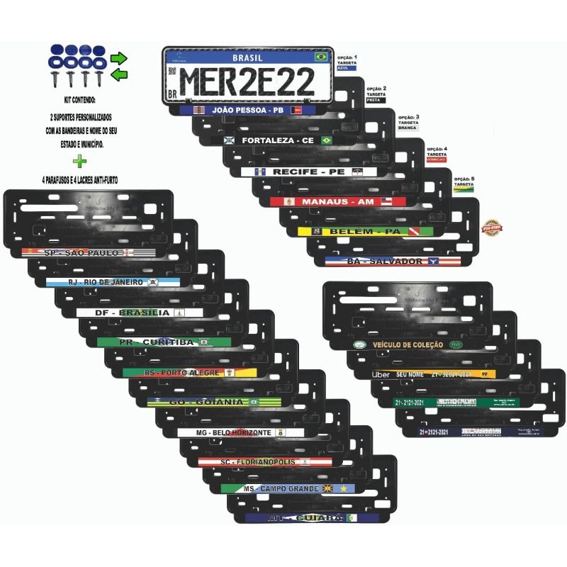 Suporte Protetor Placa Mercosul ESTADO e MUNICÍPIO Personalizado CARRO Parafusos e Lacres Antifurto