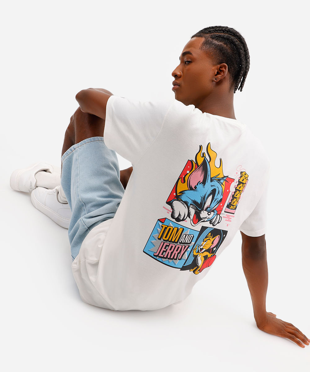 camiseta masculina de algodão tom e jerry off white