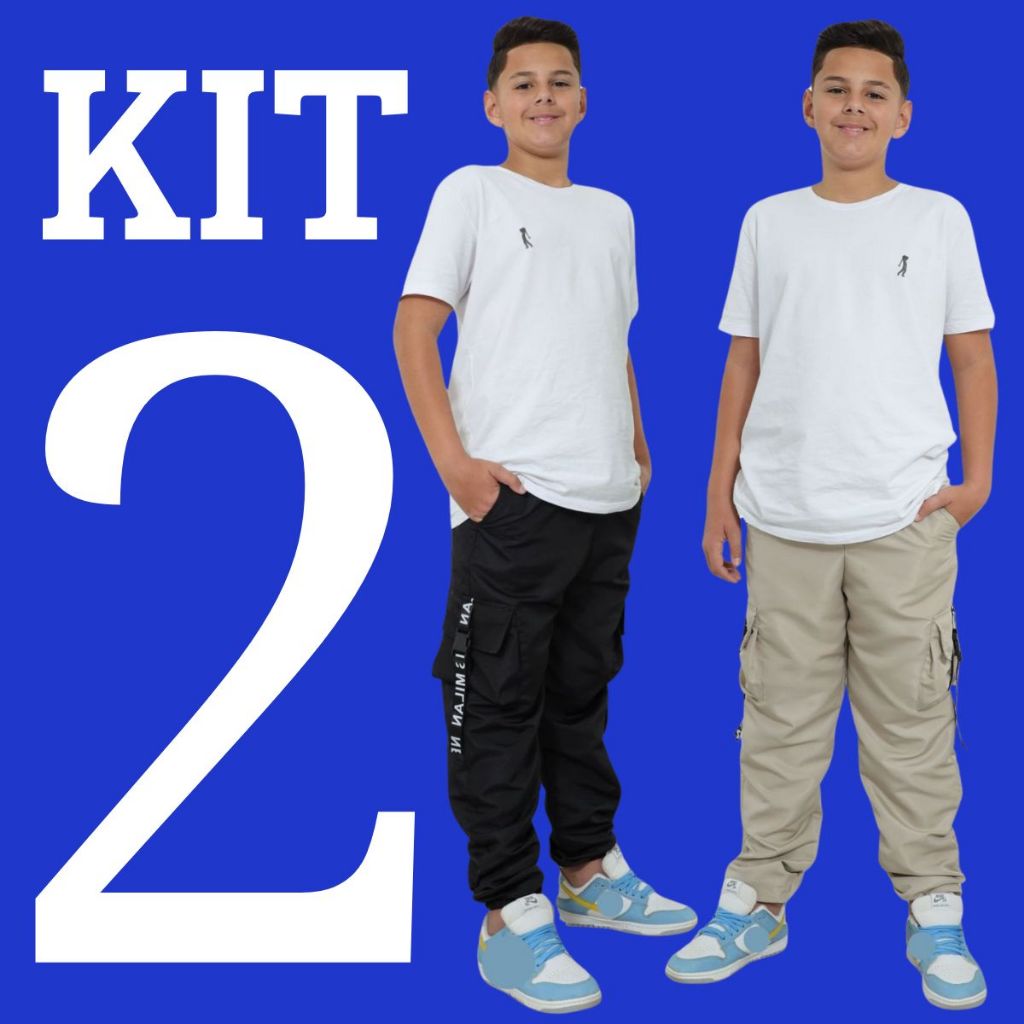 KIT 2 Calça Infantil Menino Tactel Jogger Com 4 Bolsos Cargo Estiloso 4 Cores Skate Street Calca Masculina T