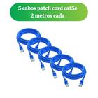 Kit com 5 Cabos de Rede Patch Cord Cat RJ45 3 Metros