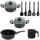 Conjunto Panelas Preta Indução Cooktop Elétrico Á Gás 4 Pçs