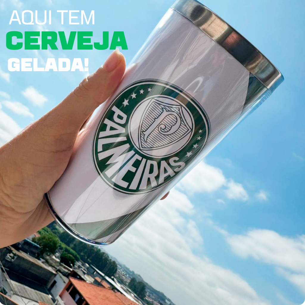 Copo Térmico Personalizado Inox Interno Palmeiras Alviverde 450 ml Cerveja e Chopp