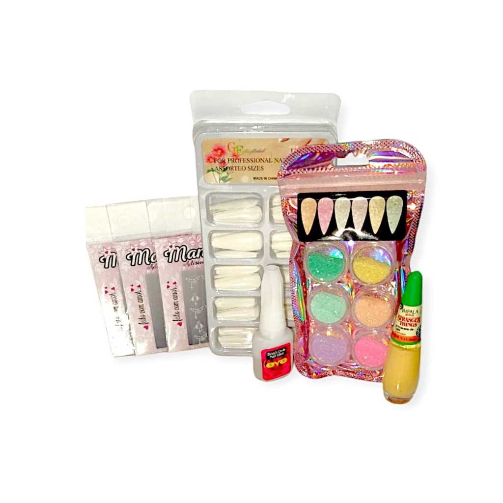 KIT UNHA POSTIÇA BAILARINA Leitosa + Cola com Pincel + Gitter e Adesivo + Esmalte Impala