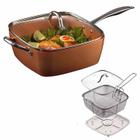 4 pçs antiaderente cobre chapeamento quadrado pan indução chef com tampa de vidro fritar cesta rack vapor 9.5 polegadas
