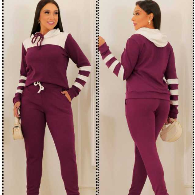 Conjunto Moletom Creppe Manga Longa Calça E blusa Feminina Roupa De inverno tamanho M G GG