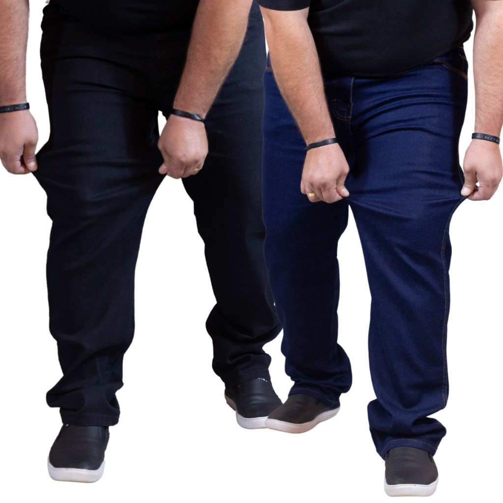 Kit Com 2 Calças Jeans Masculina Com Elastano Plus Size Azul e Preta Para trabalho Linha Premium Com Preço Promocional