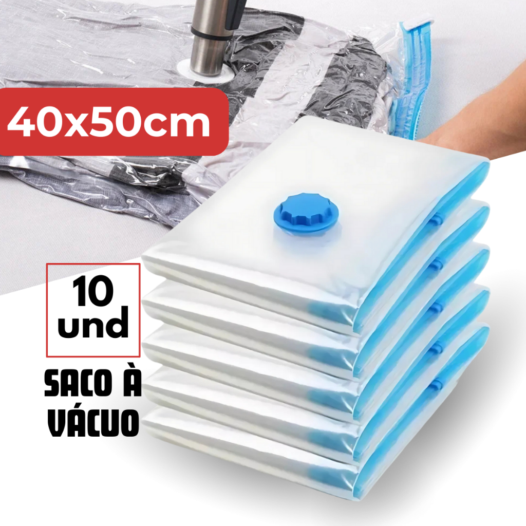 Kit 10 Sacos a Vácuo 50x60cm Organizador para Roupas Mala Cobertor Organização Guarda Roupa