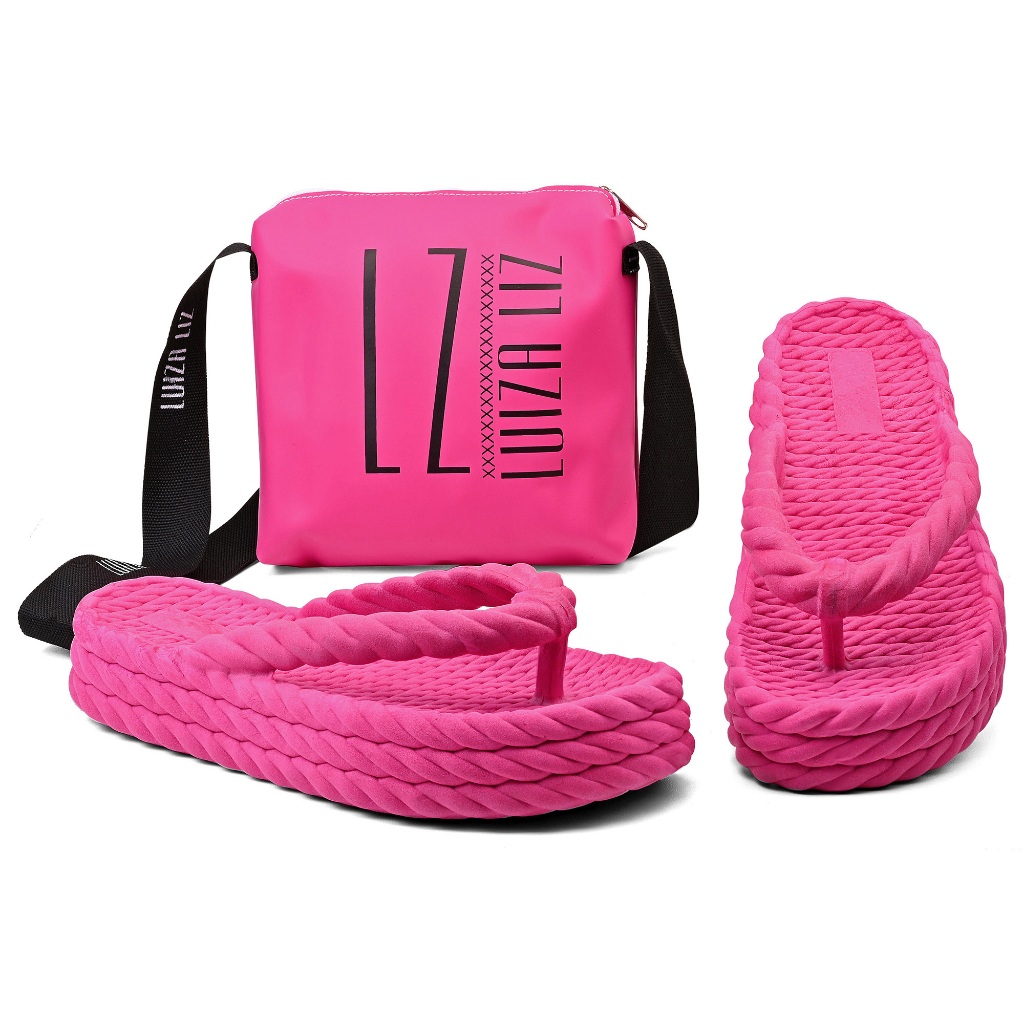 Sandália chinelo 3 tiras Plataforma trançado Confortável com Bolsa de Lado Luiza Liz
