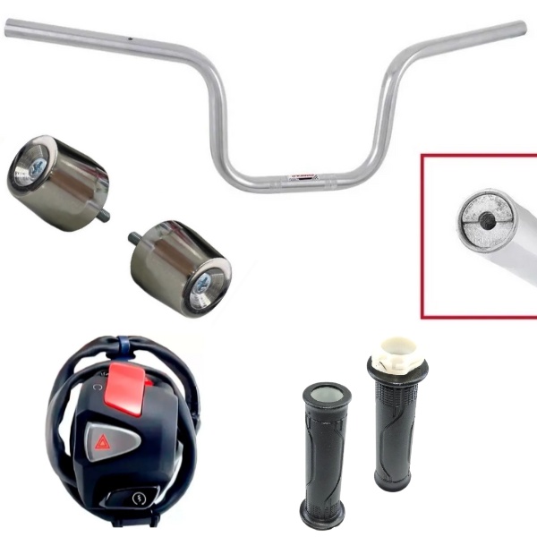 Kit Guidão cargo Manopla C/ Roldana + Punho S/Plug Cb500x Titan 160 + Pesinho Pcx Cromado Fan 160 Titan Start 160/150/125
