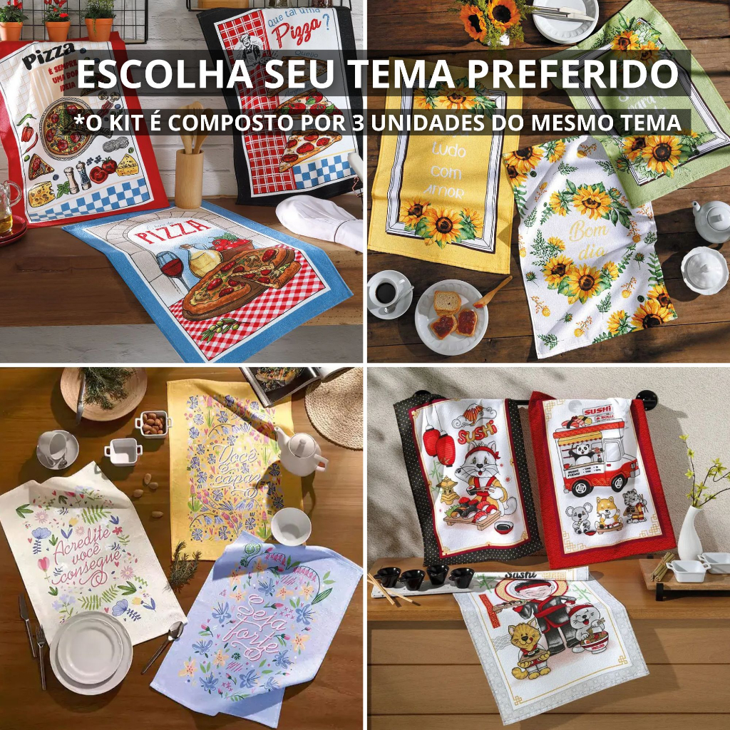 Kit 3 Panos De Prato/Copa Atoalhado Dohler Cozinha Felpudo Estampado Ótima Absorção