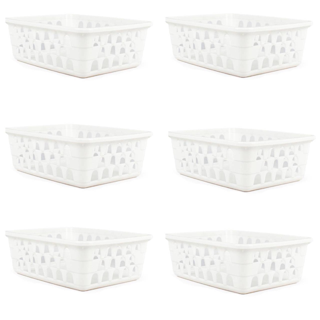 Kit 6 Cestos Multiuso Organizador Médio 20x15,5x6,5Cm Branco