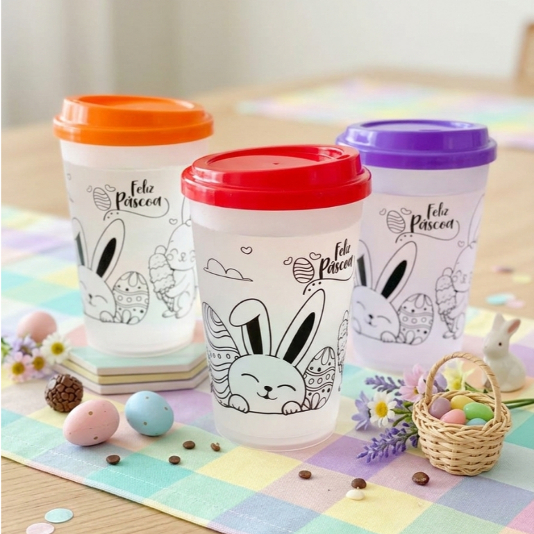 Kit Copos 500ml Transparente Personalizado Páscoa Lembrancinha Coelhinho Festa Brindes Decorativos
