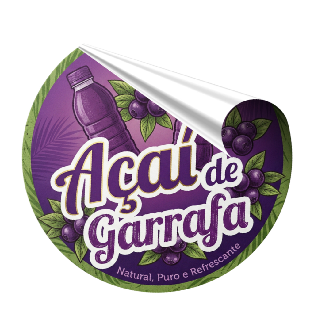 100 Adesivos Tag Açaí na Garrafa 5x5cm - recortado - Papel adesivo - Redondo