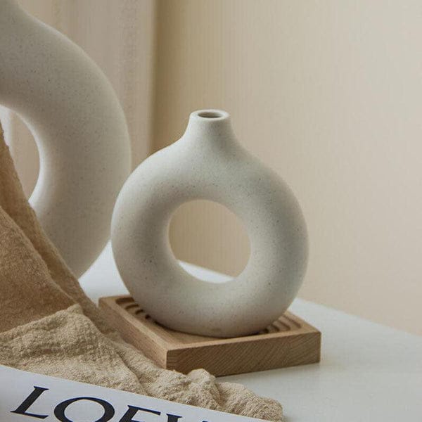 Vaso Pequeno Nórdico Minimalista Donut em cerâmica branca para decoração