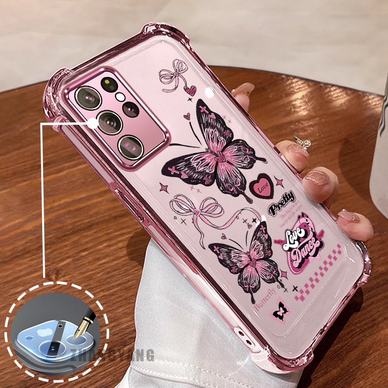 Capa Para Samsung S20 fe Quatro Cantos silicone anti Queda Caso De Telefone Galvanoplastia Estética Borboleta Novo desig