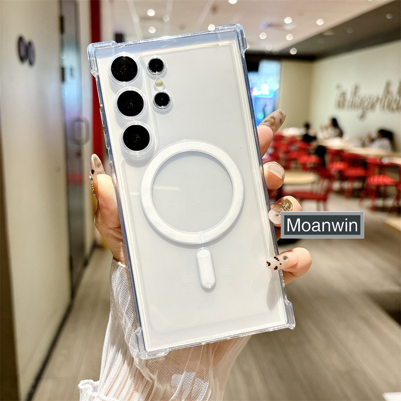 Capa Magnética anti-Queda Transparente De Quatro Cantos Para Samsung S23 , S24 , S25 , Ultra Plus FE Com Absorção De Cho