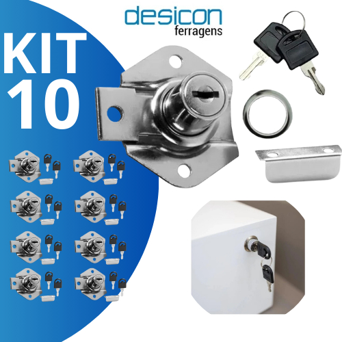 Kit 10 Fechadura Gaveta cano curto 22mm com chave Fixade Alta Qualidade e Frete Gratis