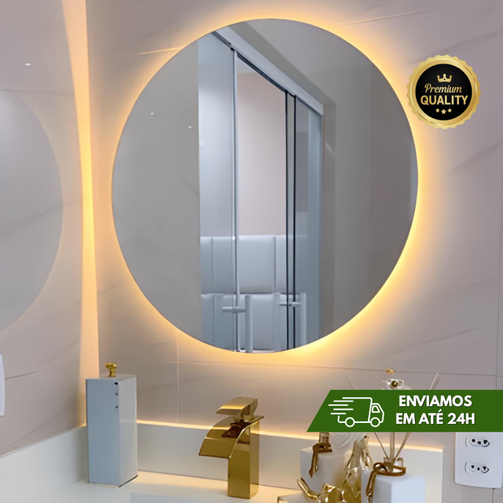 Espelho Lapidado com LED 50 e 60 cm para Banheiro, Sala, Quarto, Escritório e Salão