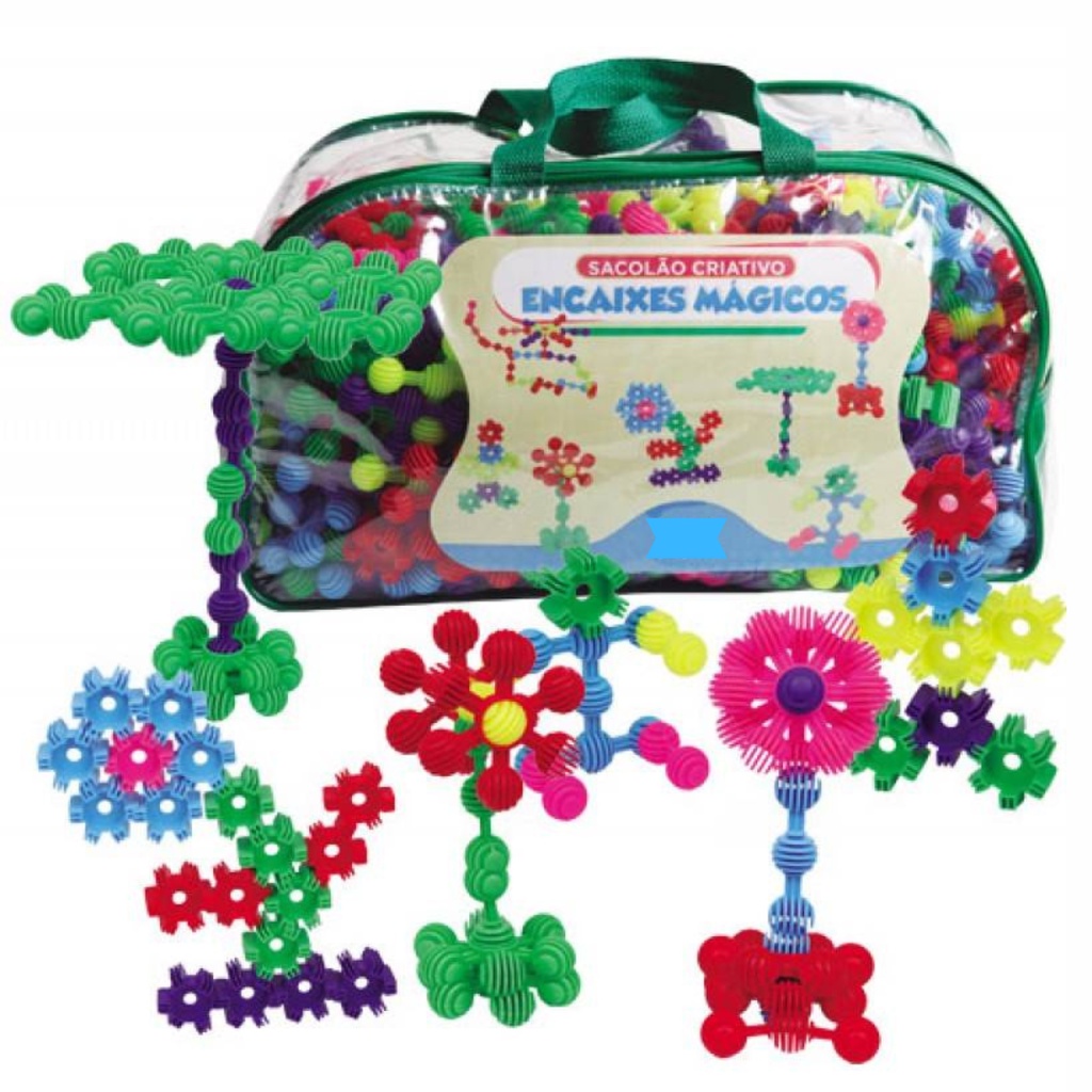 Blocos de Montar Encaixes Mágicos Coloridos Criativo Sacolão 400 peças