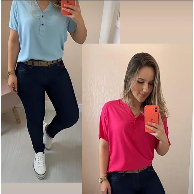 Blusa feminina manga curta com botões viscolinho Soutinho moda P M G GG