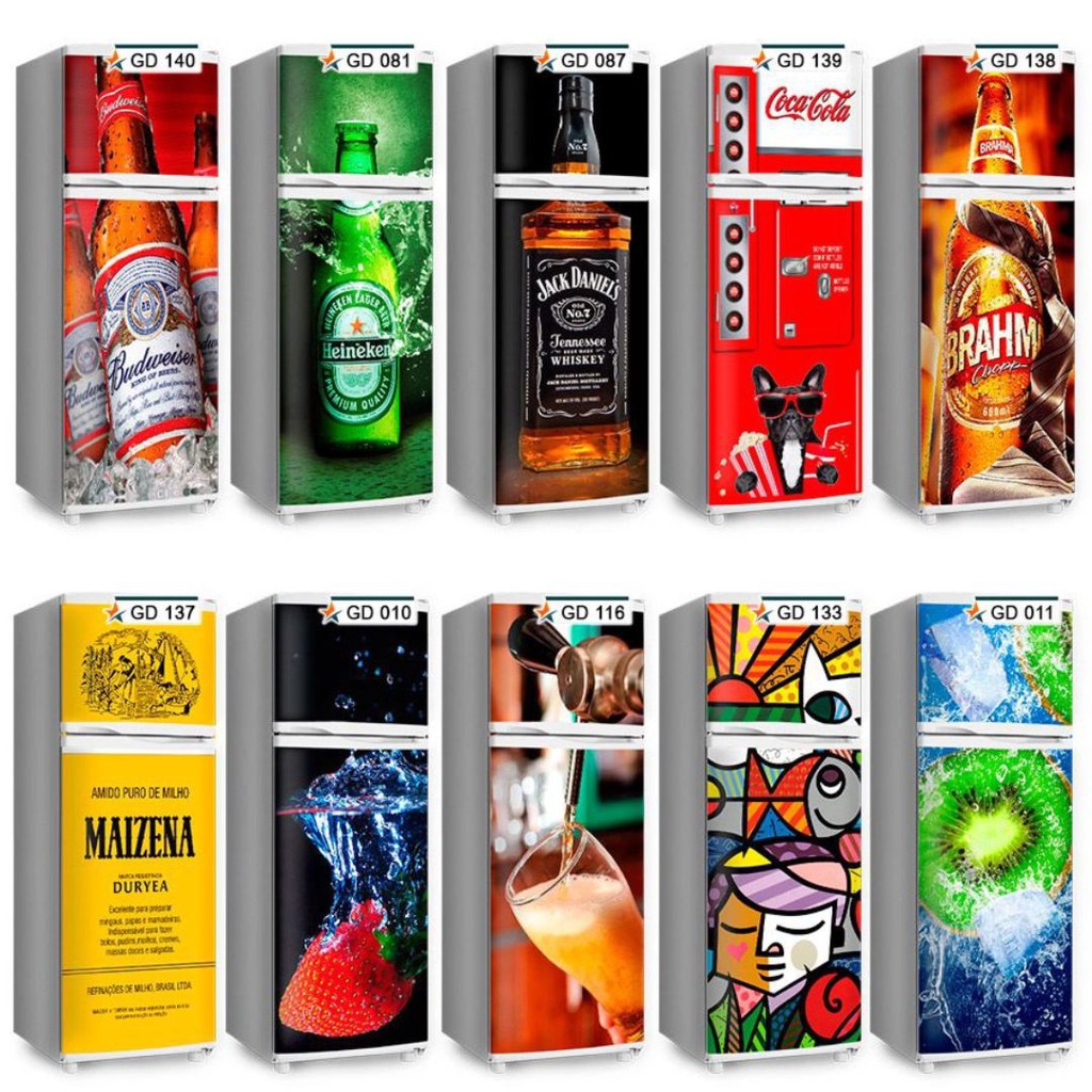 Adesivo Envelopamento Geladeira Whisky Cerveja Bebidas Famosas Kombi Varios Temas Grande 175x68x60cm