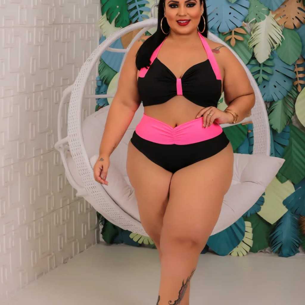 biquini Plus Size amarração lateral cintura alta com bojo removível reforçado tecido canelado uv forrado 44 ao 56