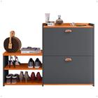 Sapateira Banco Plenitude Porta Basculante Detalhe Rústico e Prateleira Interna - Nature/preto - Lh