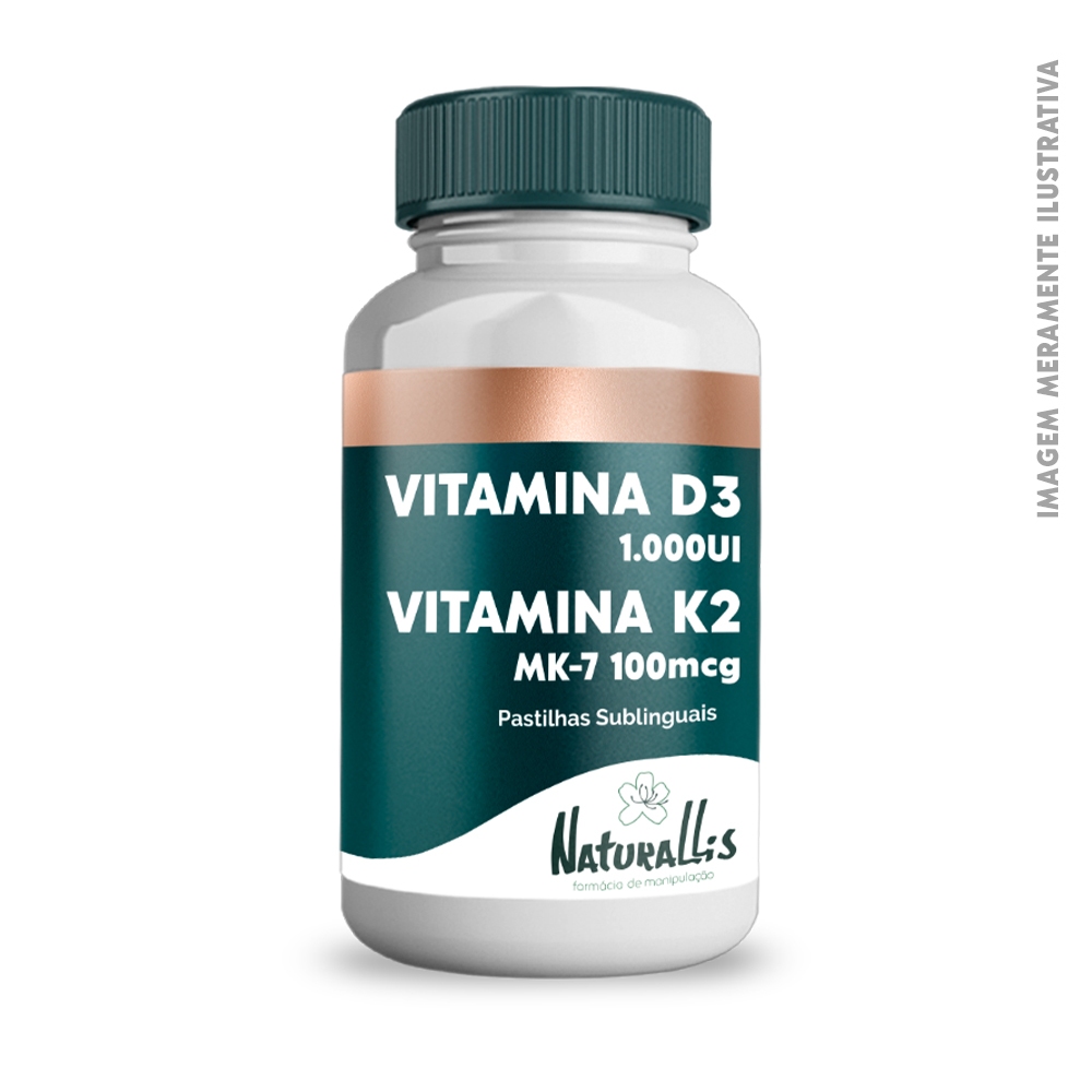 Vitamina D3 1.000UI C/ Vitamina K2 MK-7 100mcg - 60 ou 120 Pastilhas Sublingual