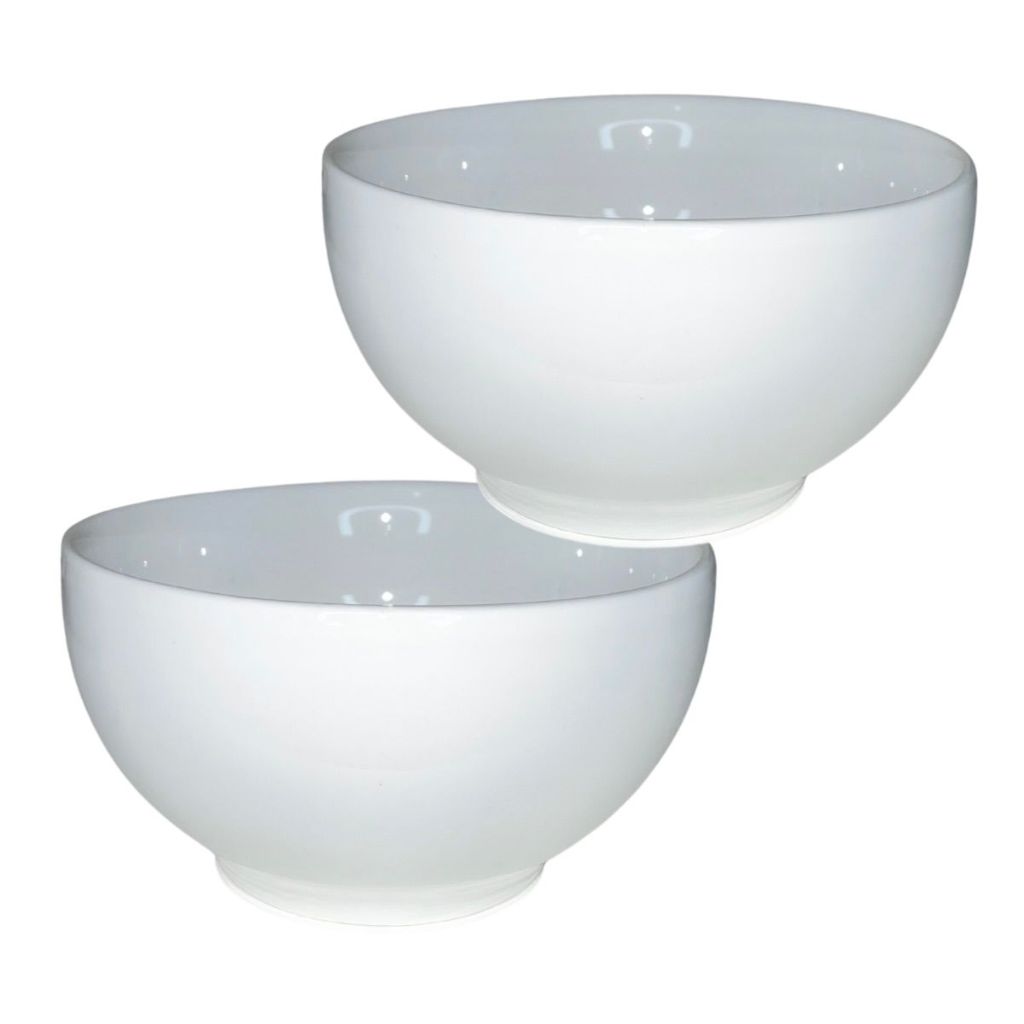 Kit 2 Tigela Bowl Cumbuca 500 ml Japonesa Porcelana Branca para Caldo Sopa Forno Refratário Porções