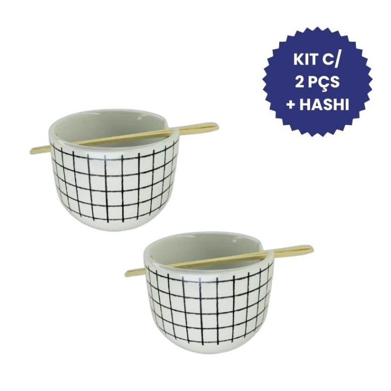 Kit 2 Cumbuca para Poke Yakissoba Porcelana com Hashi Tigela Japonesa