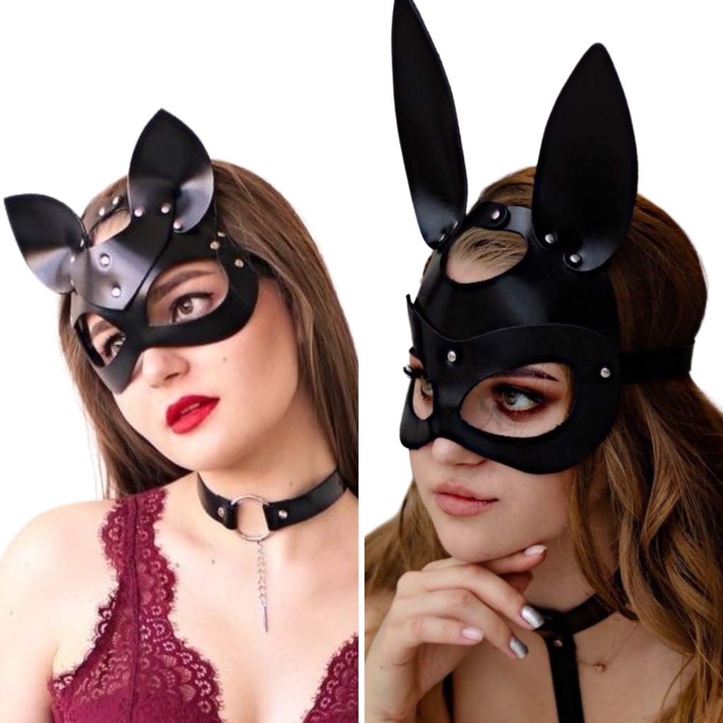 Mascara Couro Festa Fantasia Halloween Mulher Gato Coelha Coelho