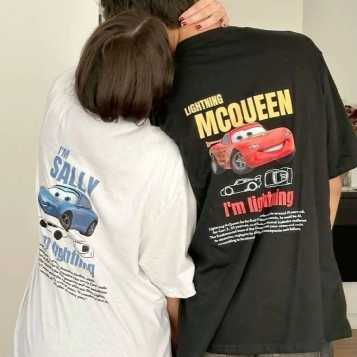 Camiseta filme Carros Relâmpago Mcqueen e Sally Camisa casal namorados T-shirt 100% algodão