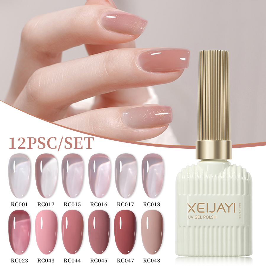 XEIJAYI 12Pcs 15ML Esmalte de Unha Em Gel 6 Cores Preto Branco Rosa Verde Sem Limpeza Conjunto Todas as Estações
