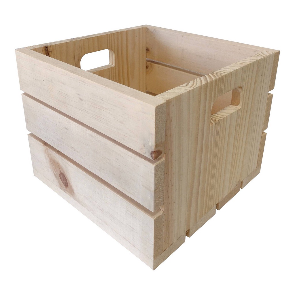 Caixote de Madeira Pinus Grande com Alça Acabamento Liso e Lixado