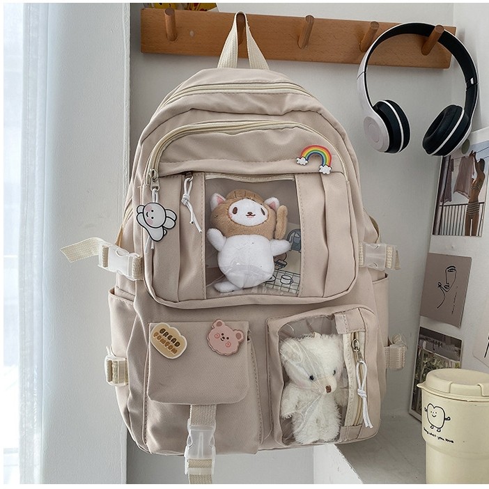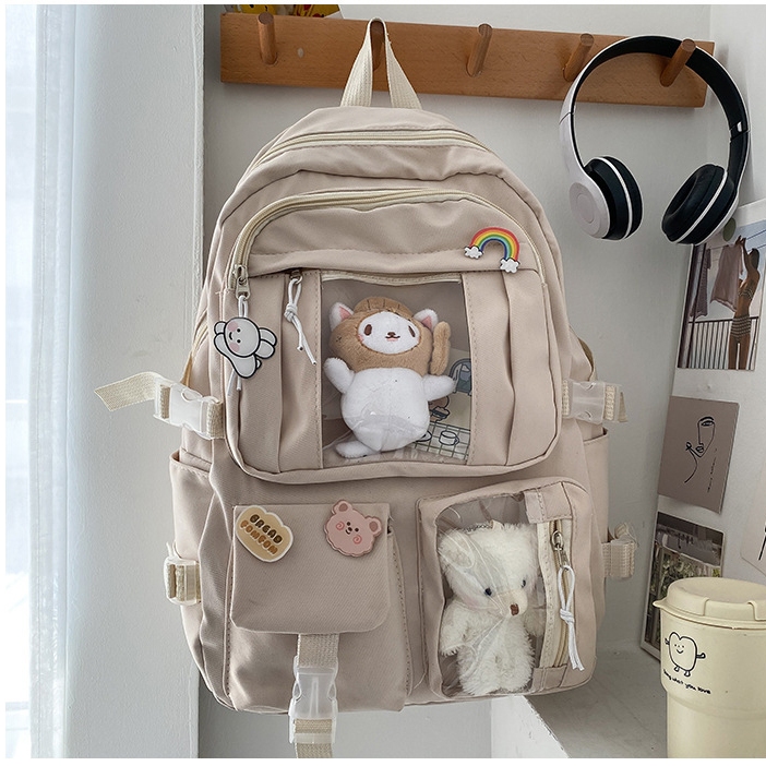 💚Mochila grande capacidade, fofa e juvenil para estudantes, mochila com zíper antirroubo