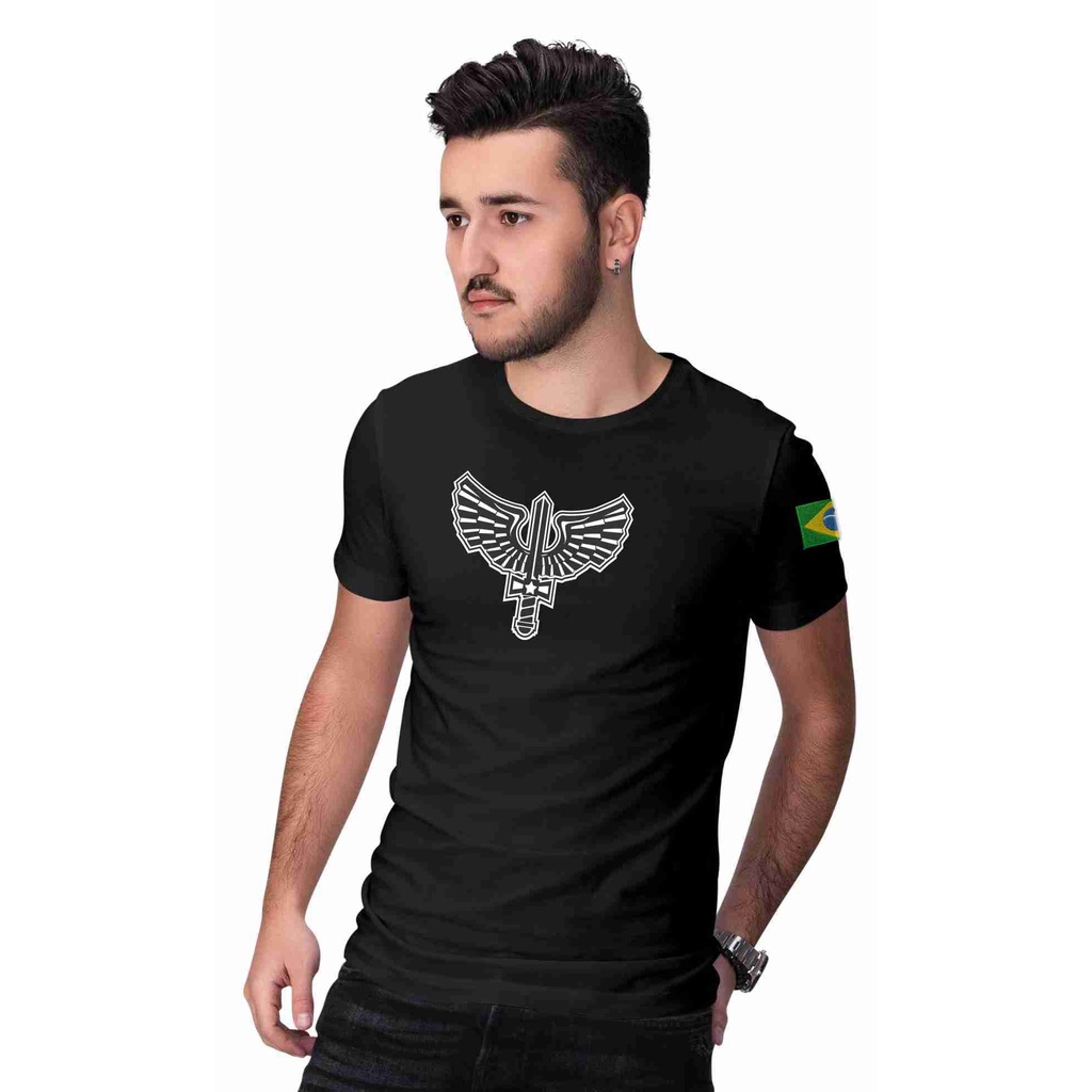 Camiseta militar Camisa masculina Preta caveira força e honra