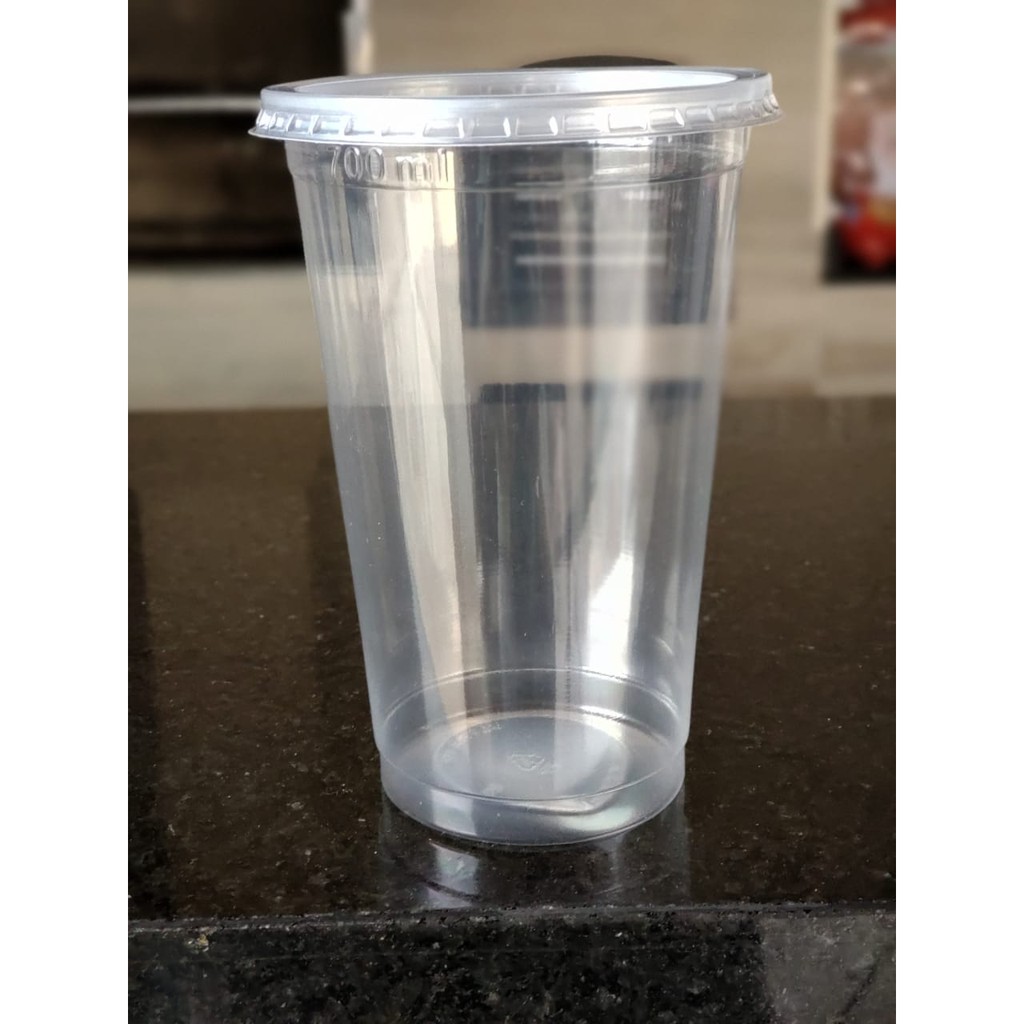 50 Copos Descartáveis Plástico PP 770 ml Transparente com Tampa Reta Sem Furo