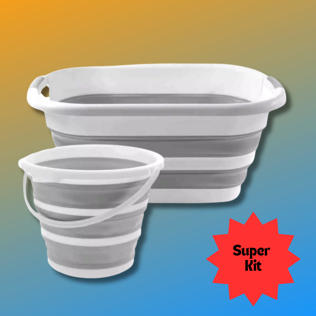 Kit Com Balde Retrátil Flexível 10 Litros E Cesto Dobrável 26 Litros Silicone Multiuso