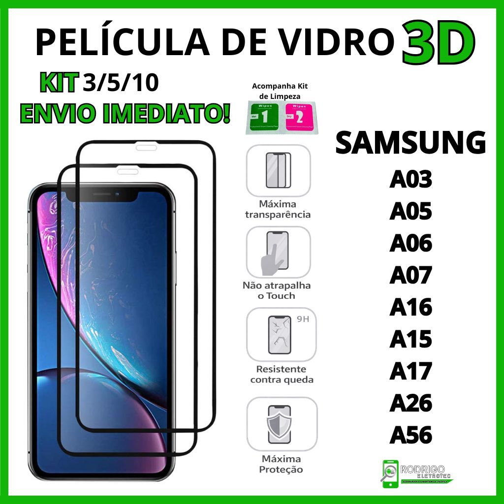 Película de Vidro 3D Temperado Para Samsung A03 A05 A06 A07 A15 A16 A17 A26 A56 Kit 3 5 10